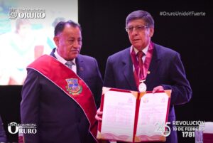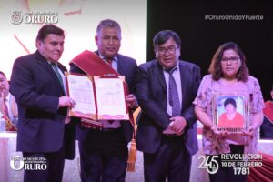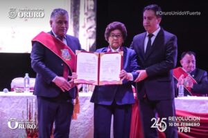 El Concejo Municipal de Oruro, en la sesión de honor en conmemoración a los 245 años de la Revolución del Febrero de 1781, efectuó la entrega de condecoraciones a personalidades e instituciones destacadas, que dieron un aporte al desarrollo de nuestra ciudad y departamento de Oruro.