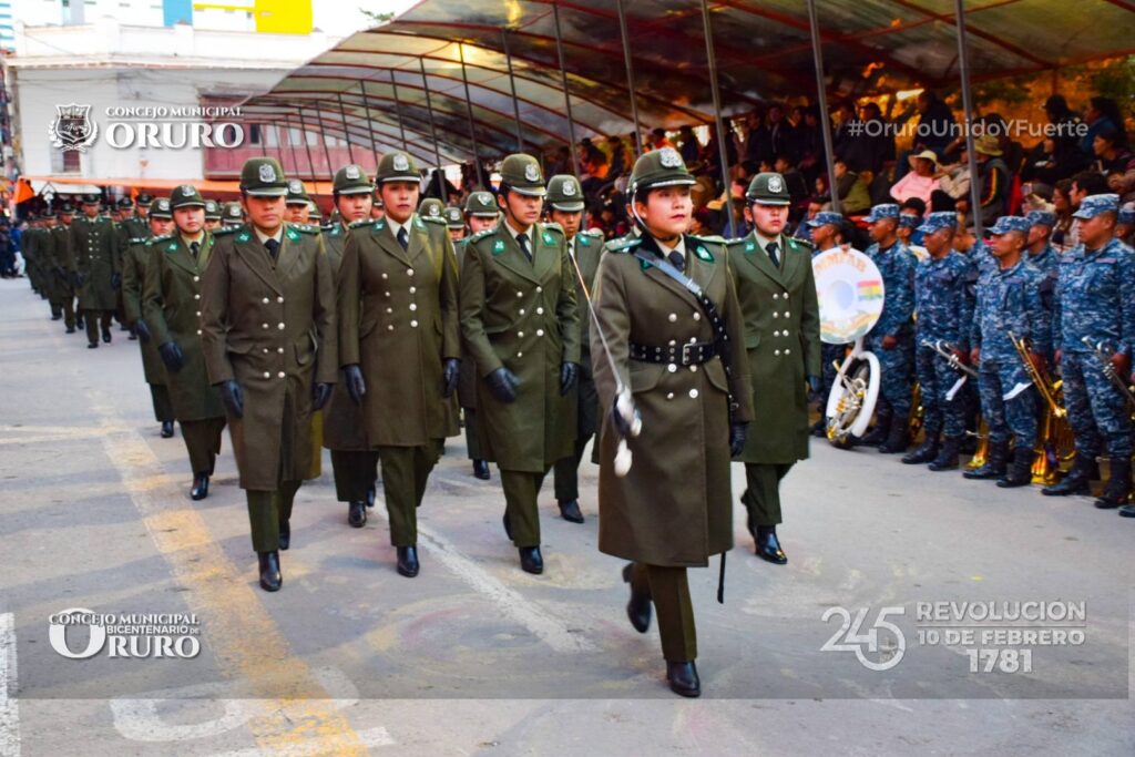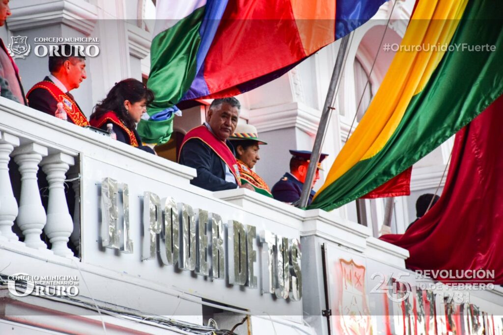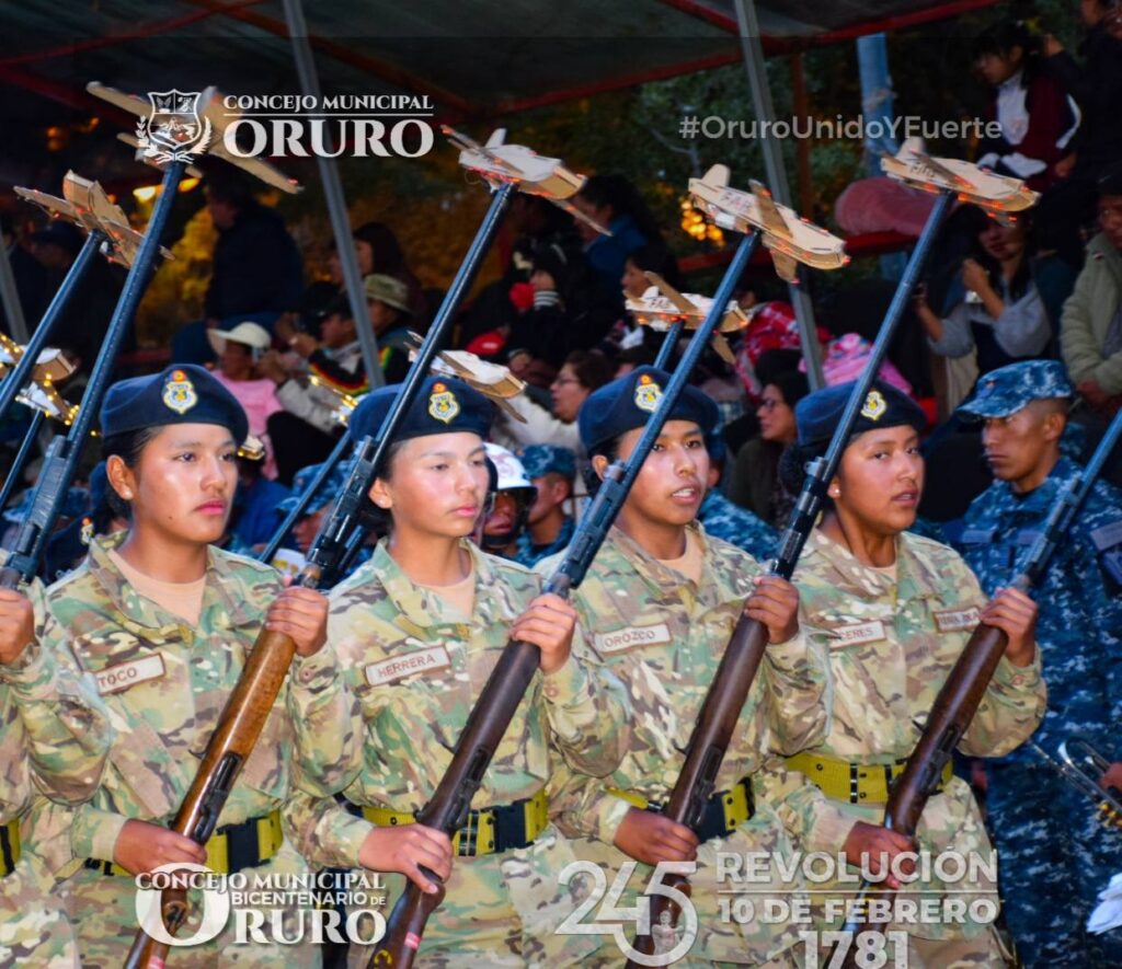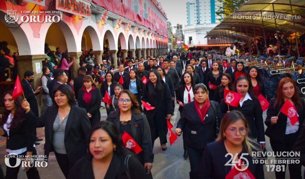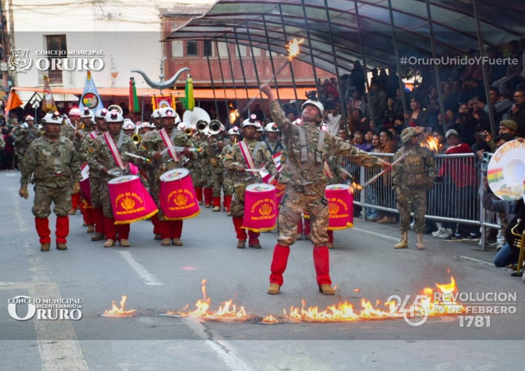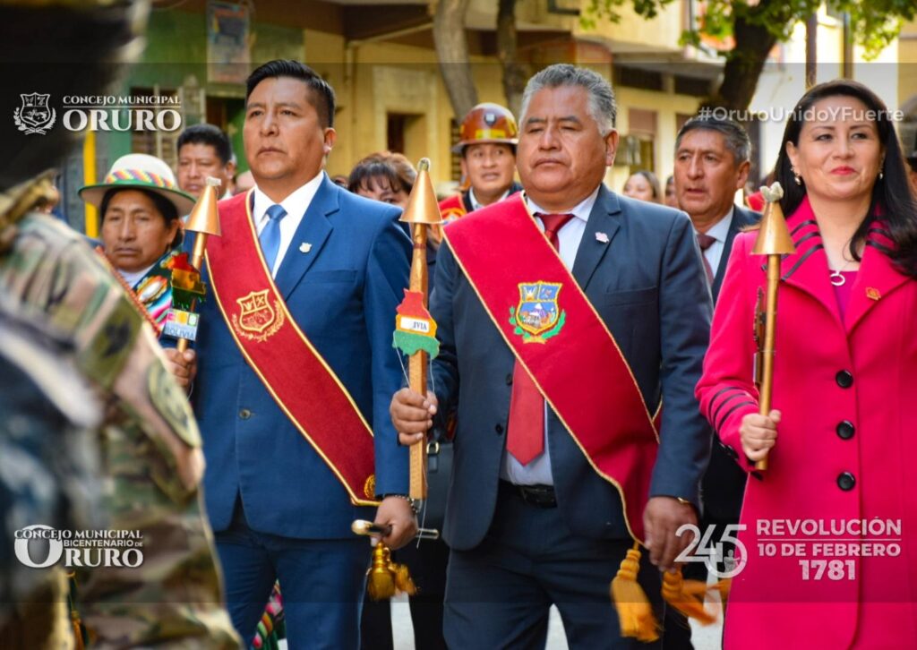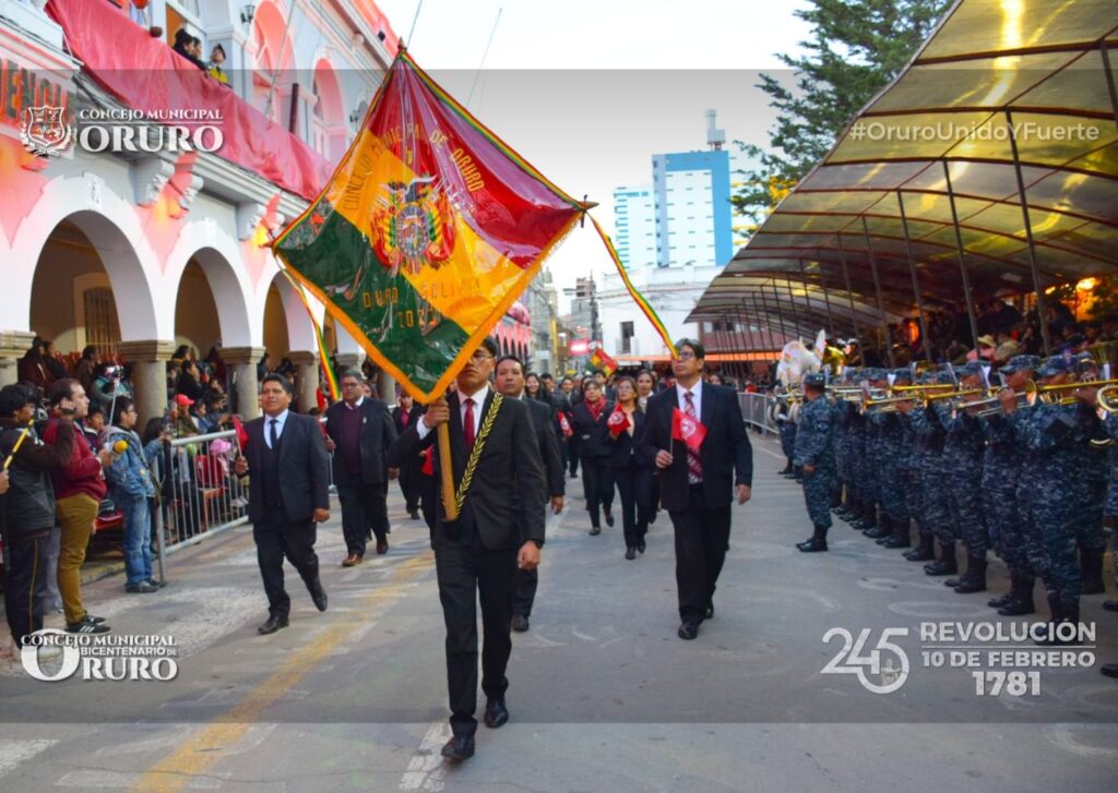 El desfile de teas es parte de los actos protocolares en en la ciudad de Oruro, para conmemorar la Revolución del 10 de Febrero de 1781. El presidente del Concejo Municipal de Oruro, Samuel Mendizábal Villca junto a otras autoridades, participó en el desfile de teas, en conmemoración a la Revolución del 10 de Febrero de 1781.