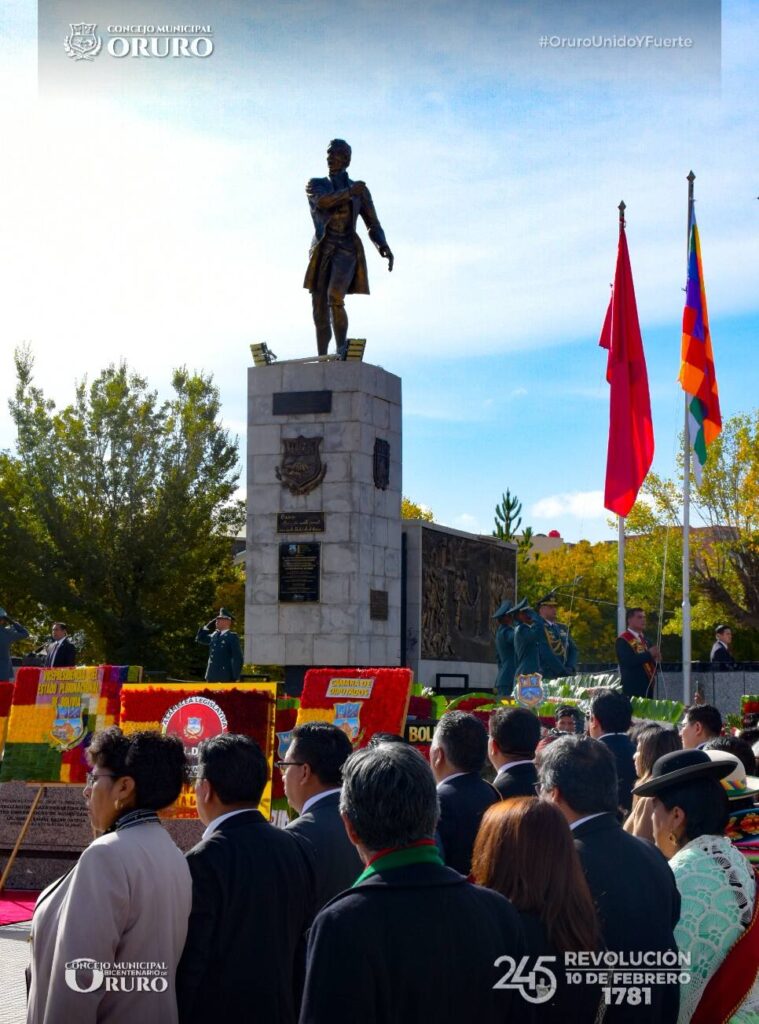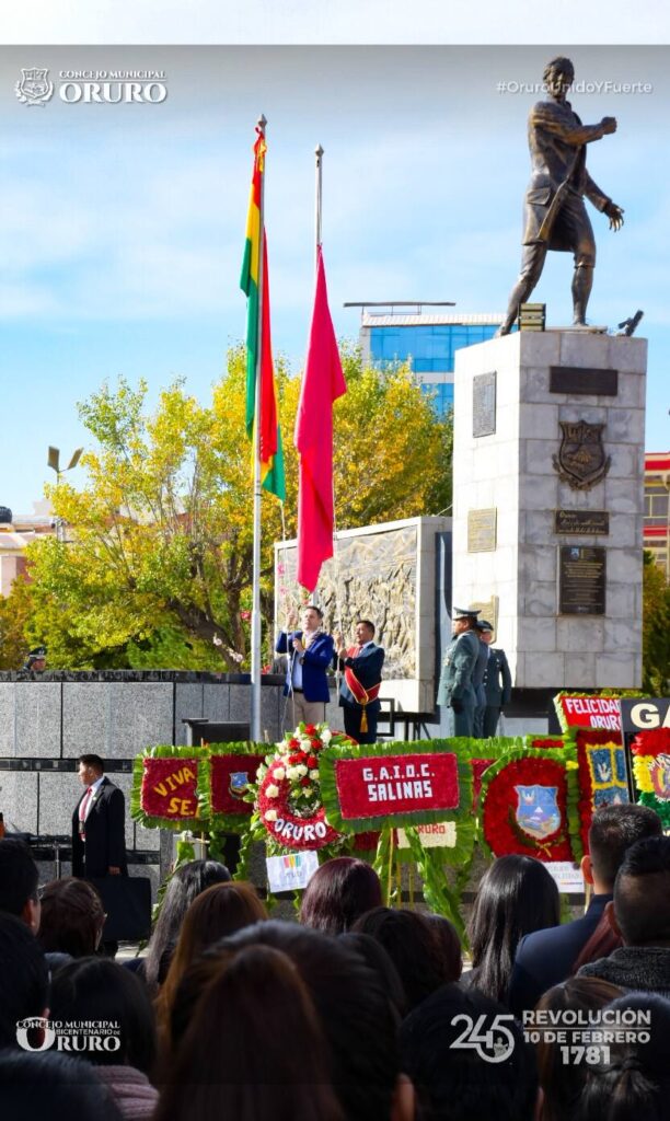 Iza de las banderas en homenaje a la Revolución del 10 de Febrero de 1781.